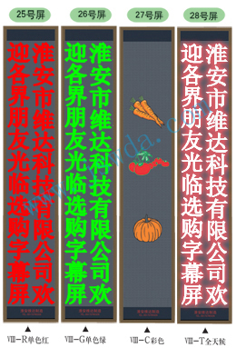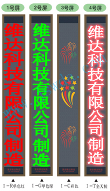 規(guī)格說明:   v型系列:高1.74米(192點),寬0.20米(16點),單行顯示,常用字數(shù)不超過14個字.