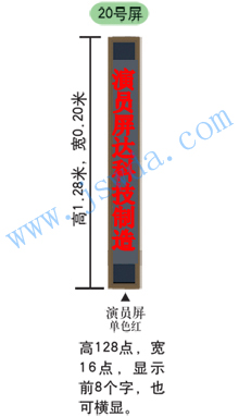 規(guī)格說明:   高1.28米(128點),寬0.20米(16點),顯示前8個字,也可橫顯